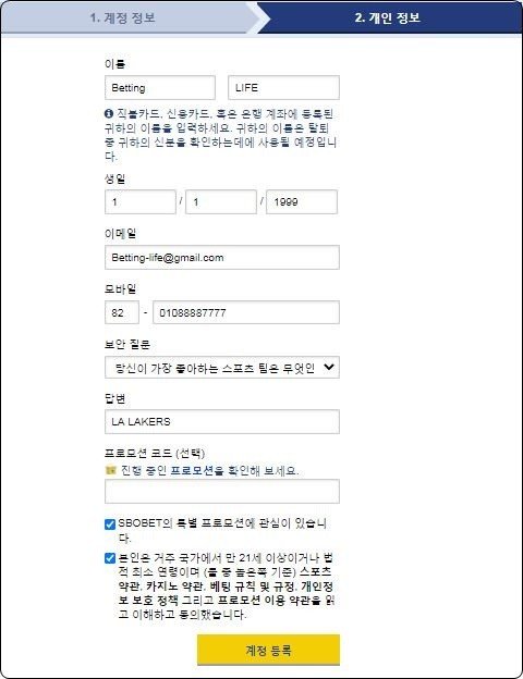 이제 가입이 완료되었으며 가입 심사후 자유롭게 스보벳을 이용할 수 있습니다!